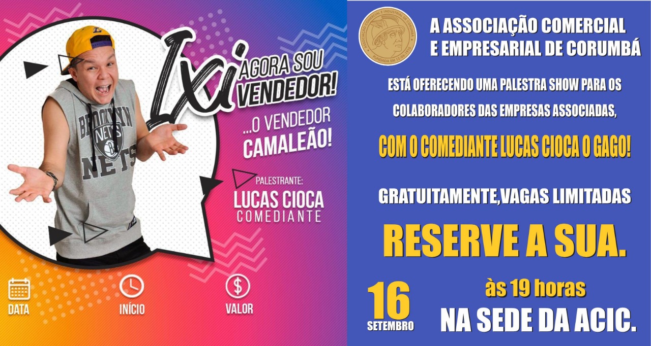 Acontecerá no dia 16/09, às 19H na ACIC.